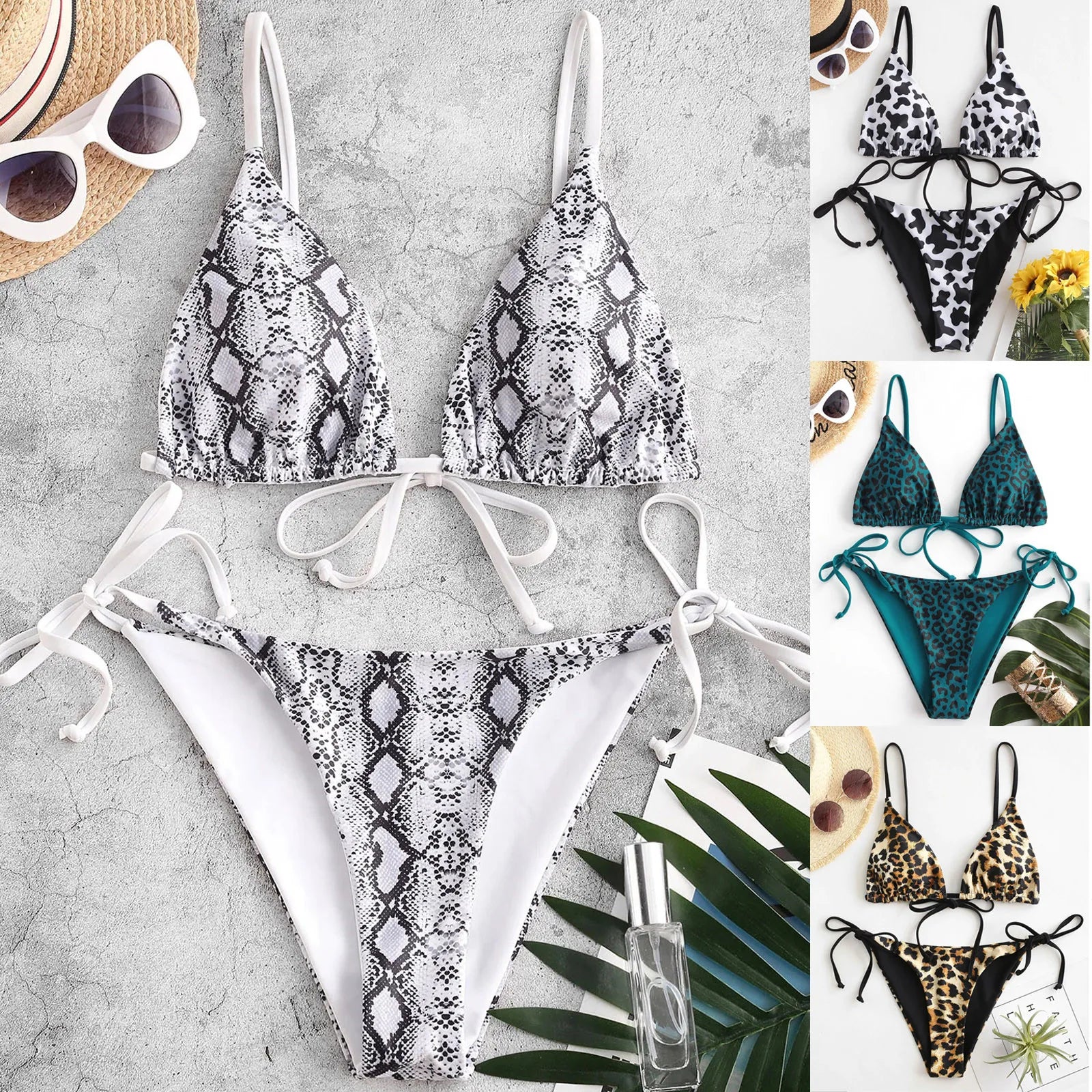 Améliorez votre look de plage avec notre ensemble de bikini string élastique ultra fin.